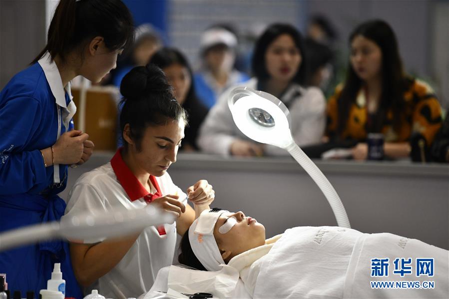 5月28日,选手参加“一带一路”国际技能大赛美容项目比赛。 当日,以“技能合作、共同发展”为主题的“一带一路”国际技能大赛在重庆正式开赛,共有44个国家和地区的近700名人员参与,参赛选手在为期两天比赛中参与18个项目的技能竞赛,中国代表团派出18名选手参加全部18个比赛项目。 新华社记者 刘潺 摄