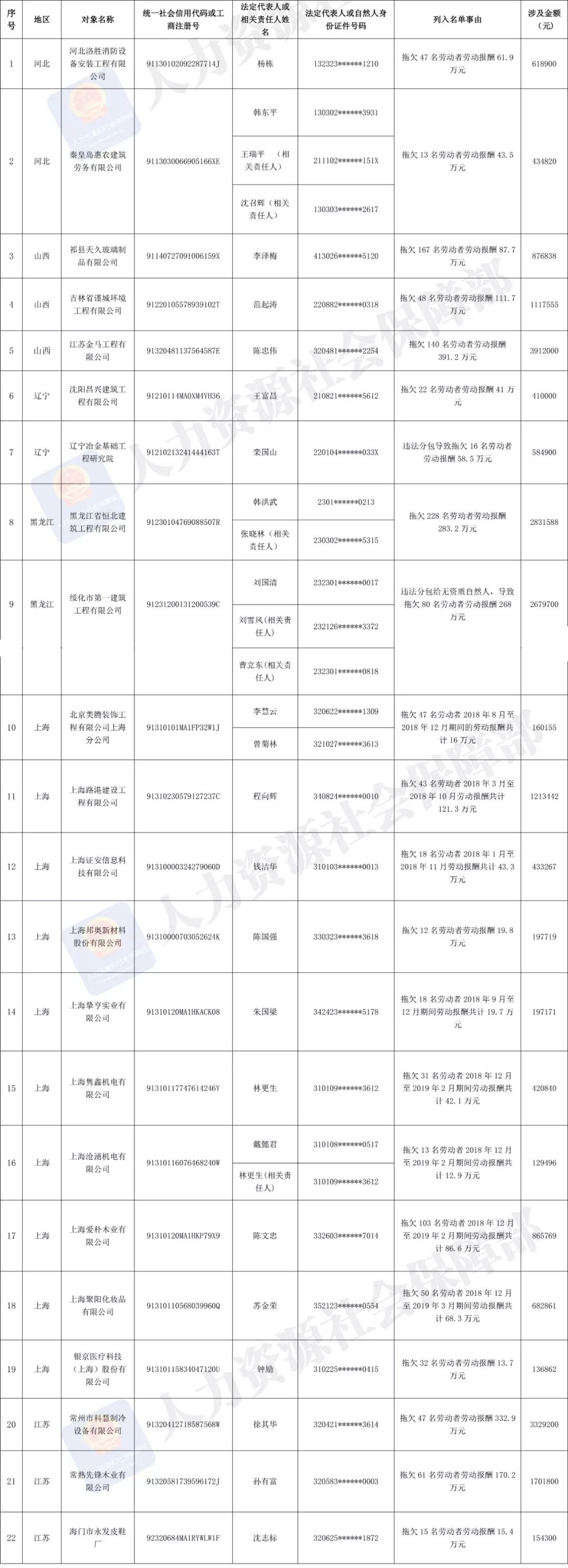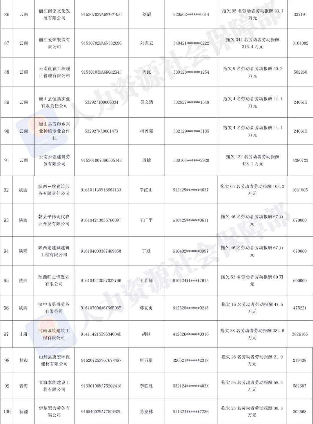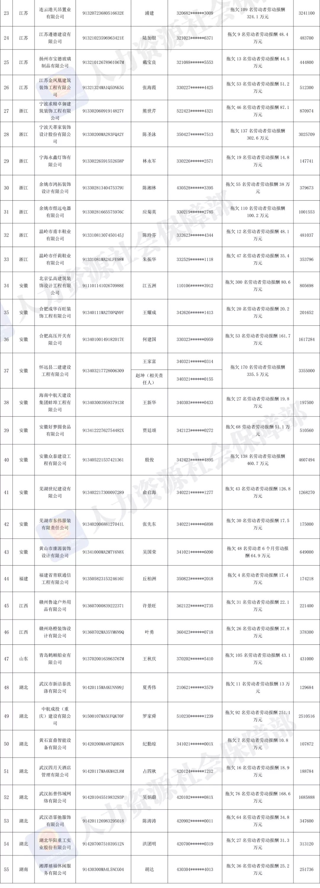 人社部昨天还推出今年第三批拖欠农民工工资“黑名单”,上“黑名单”的100家企业中有43家工程建设领域企业。这批案件涉及劳动者7548人,涉及金额1.2亿元。