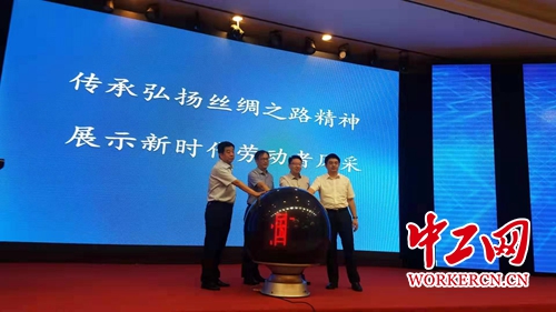中工网宝鸡9月9日电(记者 薛生贵)由陕西工人报社、宝鸡市总工会主办,陕西省建设工会协办的“全国工会媒体丝路行”在陕西省宝鸡市启动。工人日报社副社长、中工网总裁王四新、陕西省总工会副主席张剑、宝鸡市委常委、副市长曾德超、市政协副主席徐勇共同按下“全国工会媒体丝路行”启动球。宝鸡市人大常委会副主任、宝鸡市总工会主席曹海芹主持启动仪式。