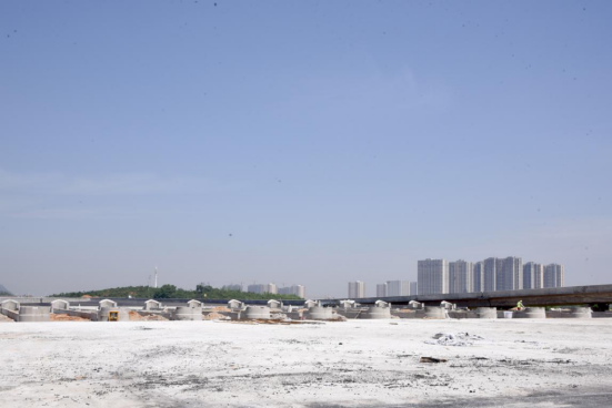 ▲观音岩收费站的12个高速公路收费通道的水泥墩已初步完工。