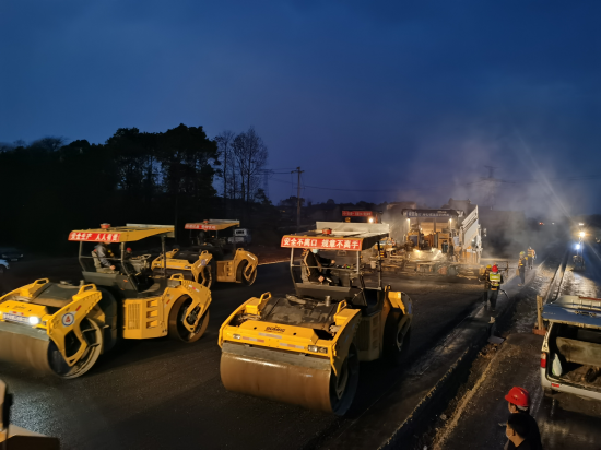 不仅有“超级变形金刚”的助力,在曹双喜负责的标段,还实行了“3+24”的工作制度:24小时不停工、24小时材料保障、24小时安全质量管控,有力推动了路面工程高效建设。