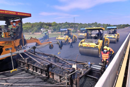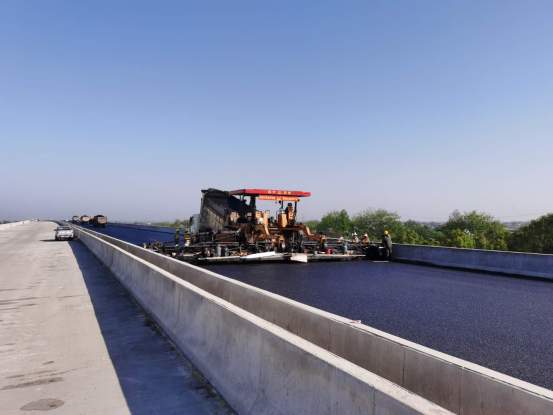 为从严把控路面摊铺质量,长益高速扩容工程第8、第9合同段陆续引进多台摊铺“超级变形金刚”,实现一次性整体摊铺,主线施工每天可以推进2.5公里,大大缩短了施工周期。“宁乡北收费站已于5月10日率先完成了主线施工,13日完成连接线沥青上下层的施工。”长益扩容工程8标现场生产副经理曹双喜告诉记者。