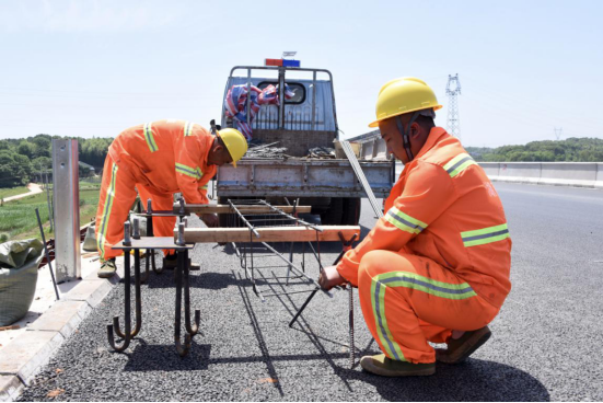 长益高速扩容项目交安工程施工现场,来自张家界的王中云正和同事“拉扯”着钢筋。他们的任务是,3个月完成职责范围内6公里的隔音墙建设工作。为此,他们抢抓晴好天气,每天早上6点出工,至晚方归。全天超过10个小时的户外作业,20岁的王中云已经被晒得黝黑。“我们计划将工期缩短至两个月,辛苦点不要紧,就是希望别下雨耽误施工进度。”王中云说。